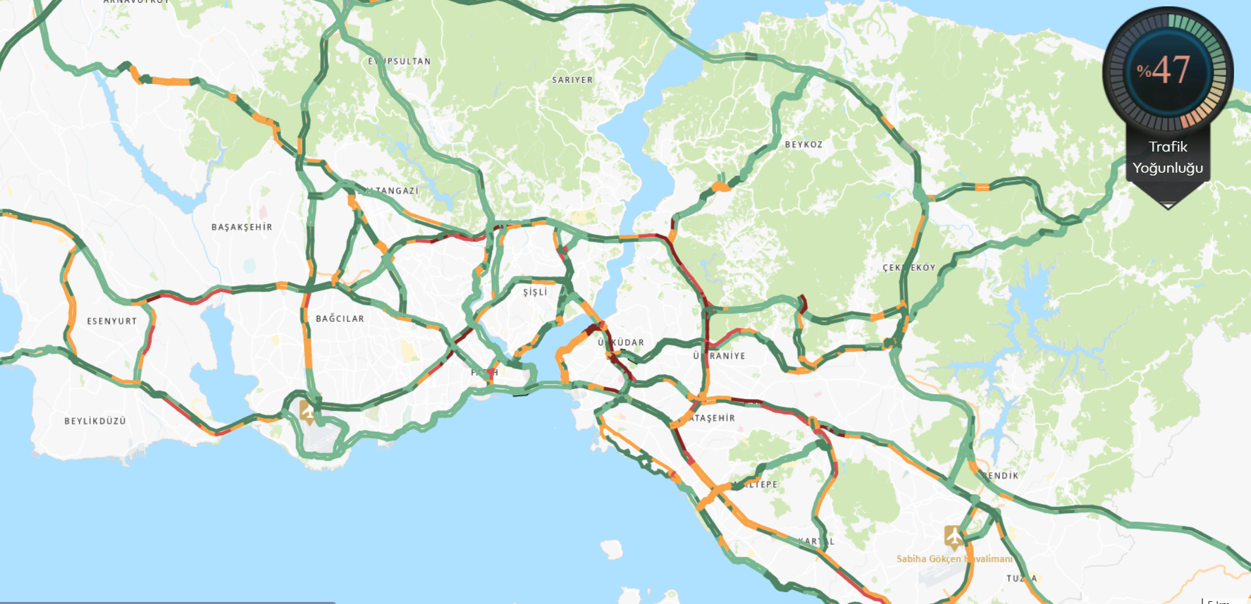 Anadolu Yakası’nda ise Üsküdar, Ümraniye, Ataşehir ve Maltepe çevresinde ana yollar ve bağlantı güzergâhlarında yoğunluk artmış durumda. D-100 ve TEM bağlantılarında özellikle sabah ve akşam saatlerinde etkisini artıran trafik, Sabiha Gökçen Havalimanı bağlantı yollarında da yer yer yavaş seyrediyor.